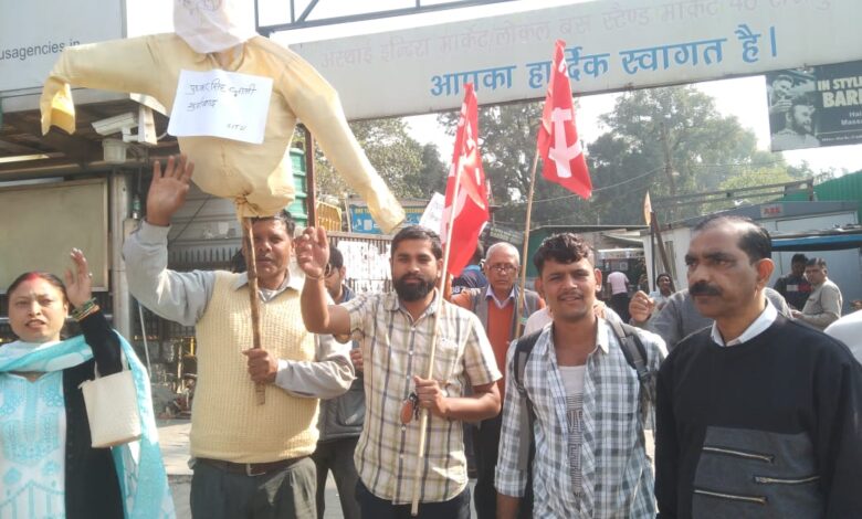 देहरादून 21 नवम्बर। सेन्टर आफ इण्डियन ट्रैड यूनियन्स (सीआईटीयू) ने उत्तराखंड सरकार द्वारा सरकारी कर्मचारियों और अधिकारियों के हड़ताल करने पर रोक का फैसला लिया है। सूबे की धामी सरकार ने अगले 6 महीने के लिए एस्मा एक्ट लगाने के विरोध में राज्य सरकार के सभी विभागों, निगमों और प्राधिकरणों में सरकारी कर्मचारियों की हड़ताल पर छह महीने की अवधि के लिए प्रतिबंध लगाने के विरोध में तथा। आन्दोलनलत उपनल कर्मचारियों के समर्थन में धामी सरकार की कर्मचारी विरोधी नीति के खिलाफ जोरदार नारेबाजी कर सरकार का पुतला दहन किया तथा सरकार सेे अविलम्ब कर्मचारी विरोधी फैसले को वापस लेने की मांग की तथा आन्दोलन रत उपनल कर्मचारियों को नियमतीकरण करने की मांग की है ।प्रर्दशन सीटू कार्यालय से शुरू हो कर राजपुर रोड़ पर सरकार का पुतला दहन किया।