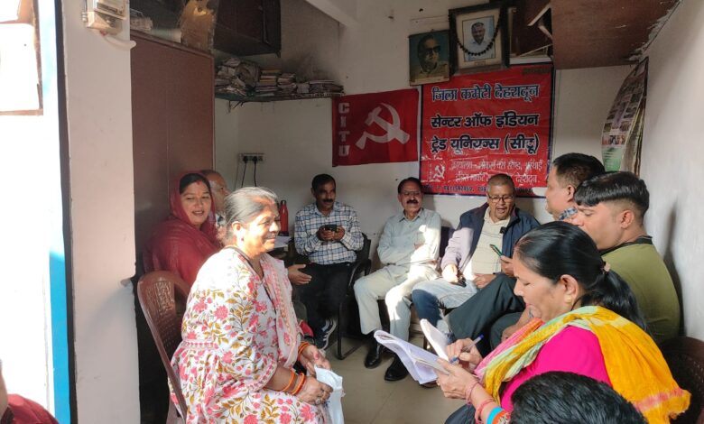 देहरादून 22 नवंबर। सेन्टर आफ इंडियन टेड यूनियन (सीआईटीयू) ने केन्द्र की मोदी सरकार द्वारा चार श्रमिक संहिताओं को लागू करने का विरोध किया तथा कहा कि इन संहिताओं के चलते श्रमिकों के उत्पीड़न में तेजी आयेगी तथा मालिकों के जुल्म बढ़ेगें चार श्रमिक संहिता मजदूर विरोधी है। सीआईटीयू की ज़िला कमेटी की बैठक ने मुख्यमंत्री से उत्तराखण्ड से आंगनवाड़ियों की 10 सूत्रीय मांग को पूरा करने का अनुरोध किया। ज्ञातब्य‌है कि गत एक बर्ष पूर्व मुख्यमंत्री ने आंगनवाड़ी यूनियन (सीटू) आदि से वार्ता की थी तथा उनकी मांगों पर कमेटी बनाई गई थी। उसके द्वारा मानदेय बढ़ोत्तरी पर एक साल से भी अधिक समय ब्यतित के बावजूद कोई रिपोर्ट नहींं दी गई। जबकि यूनियन द्वारा सरकार को बार-बार रिपोर्ट जारी करने का अनुरोध किया गया था। बैठक में कहा गया है कि आंगनबाड़ी कार्यकत्री सेविका यूनियन (सीटू) आदि की मांग रही है की मानदेय बढाया जो कि 26 हजार कम से कम प्रतिमाह हो, कार्यकत्री कि पदोन्नति मुख्य सेविका पदों पर किया जाये, पोषण पेकर पर उठाई गई आपत्ति को दूर किया जाए, सुप्रीम कोर्ट के दिशानिर्देशों के अनुरूप आंगनबाड़ी कार्यकत्री ,सेविकाओं को ईएसआई, भविष्य निधि की सुविधा दिया जाये, 46वे श्रम सम्मेलन कि सिफारिशों को लागू करने, आंगनबाड़ी केन्द्रों को किराया भारत सरकार के निर्देश के अनुसार दिया जाये आदि मांगे प्रमुख थी। बैठक में जिलाध्यक्ष एस एस नेगी, जिला महामंत्री लेखराज ,उपाध्य्क्ष भगवन्तं पयाल ,कोषाध्यक्ष रविंद्र नौडियाल ,सचिव अभिषेक भण्डारी ,जानकी चौहान संघमित्रा, सचिव प्रेंम गडिया आदि ने विचार व्यक्त किये।