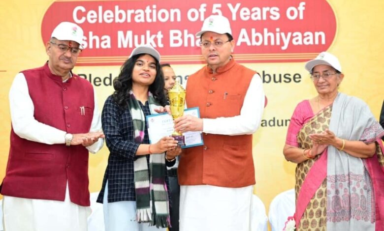 देहरादून। मुख्यमंत्री श्री पुष्कर सिंह धामी ने नशामुक्त भारत अभियान के पांच वर्ष पूर्ण होने के अवसर पर आज कैंप कार्यालय स्थित मुख्य सेवक सदन में आयोजित राज्य स्तरीय कार्यक्रम में प्रतिभाग किया। इस मौके पर उन्होंने युवाओं से अपील की है कि वो स्वयं भी नशे को पूरी मजबूती के साथ “ना” कहें, साथ ही अपने साथियों को भी नशे के लिए “ना’’ कहने के लिए प्रेरित करें। मुख्यमंत्री ने नशामुक्त भारत अभियान के पांच वर्ष पूर्ण होने की बधाई देते हुए कहा कि नशे के खिलाफ लड़ाई में अग्रणी भूमिका निभाने वाले कर्मवीरों के सहयोग से आज समाज नशे की भयावह समस्या से मुकाबला करने में सक्षम हो रहा है। उन्होंने कहा कि नशा केवल एक बुरी आदत नहीं, बल्कि समाज को भीतर से खोखला करने वाली एक भयावह चुनौती है। यह घातक प्रवृत्ति व्यक्ति की चेतना, विवेक और निर्णय लेने की क्षमता को नष्ट कर उसके पूरे भविष्य को विनाश की ओर ले जाती है। उन्होंने कहा कि प्रधानमंत्री जी की प्रेरणा से राज्य सरकार भी नशे के विरुद्ध इस महाअभियान के अंतर्गत “ड्रग्स फ्री उत्तराखण्ड” के संकल्प को साकार करने के लिए पूर्ण प्रतिबद्धता के साथ मिशन मोड पर कार्य कर रही है। मादक पदार्थों की रोकथाम के लिए वर्ष 2022 में त्रिस्तरीय Anti-Narcotics Task Force(ANTF) का गठन किया गया। फोर्स ने बीते तीन वर्ष में 6 हजार से अधिक आरोपियों को गिरफ्तार करते हुए ₹200 करोड़ से अधिक के नारकोटिक्स पदार्थ भी बरामद किए हैं। मुख्यमंत्री ने कहा कि सरकार नशे की प्रवृत्ति को रोकने, नशाग्रस्त व्यक्तियों को पुनः मुख्यधारा से जोड़ने तथा उनके पुनर्वास के लिए प्रदेश के सभी जनपदों में नशा मुक्ति केंद्रों को प्रभावी बना रही है। वर्तमान में, प्रदेश में चार Integrated Rehabilitation Centre for Addicts (IRCA) सफलतापूर्वक संचालित हो रहे हैं, जो नशा पीड़ित व्यक्तियों को उपचार, परामर्श और पुनर्वास की बेहतर सुविधाएँ प्रदान कर रहे हैं। इसके अतिरिक्त, AIIMS ऋषिकेश की सहायता से राज्य में Addiction Treatment Facility (ATF) का संचालन भी किया जा रहा है। इसी तरह राज्य के प्रत्येक जनपद के शिक्षण संस्थानों में एंटी-ड्रग कमेटियों का गठन किया गया है। उन्होंने कहा कि उत्तराखण्ड की गौरवशाली पहचान “ऐपण कला” को भी इस अभियान से जोड़ा गया है, आज नशा-विरोधी संदेशों से सुसज्जित ‘ऐपण’ पेंटिंग्स हमारे शैक्षणिक संस्थानों और सार्वजनिक स्थलों की शोभा बढ़ा रही हैं। साथ ही युवाओं को नशे से दूर रखने और उनकी ऊर्जा को सकारात्मक दिशा देने के लिए राज्य में ‘दगड़िया क्लब’ भी बनाए हैं। मुख्यमंत्री ने युवाओं को नशा मुक्त भारत अभियान की शपथ भी दिलाई, साथ ही स्कूल कॉलेजों में राज्य स्तर पर आयोजित भाषण एवं निबंध प्रतियोगिता के विजेताओं को भी सम्मानित किया। इस मौके पर कैबिनेट मंत्री श्री गणेश ज