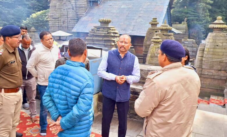 अल्मोड़ा। वर्तमान परिपेक्ष के दृष्टिगत एसएसपी अल्मोड़ा, देवेन्द्र पींचा द्वारा जनपद के प्रमुख धार्मिक एवं पर्यटन स्थलों श्री जागेश्वर धाम व चितई की आन्तरिक व बाह्य सुरक्षा सुरक्षा व्यवस्था का गहन निरीक्षण किया गया। निरीक्षण के दौरान उन्होंने पुलिस तैनाती, सीसीटीवी कवरेज, ट्रैफिक प्रबंधन, भीड़ नियंत्रण, अग्नि सुरक्षा, ब्राउण्ड्री वॉल तथा अन्य सुरक्षा बिंदुओं की विस्तृत समीक्षा की गयी। एसएसपी अल्मोड़ा द्वारा वरिष्ठ उप निरीक्षक सतीश चन्द्र कापड़ी (चितई में) व थानाध्यक्ष दन्या दिनेश नाथ महंत को (श्री जागेश्वर धाम में) पर्याप्त सुरक्षा व्यवस्था हेतु आवश्यक निर्देश दिए तथा पर्यटकों एवं श्रद्धालुओं को सुरक्षित वातावरण प्रदान करने हेतु सतर्कता बढ़ाने पर जोर दिया। साथ ही संवेदनशील स्थानों पर पुलिस की उपस्थिति बढ़ाने व असामाजिक तत्वों पर कड़ी निगरानी रखने के निर्देश भी दिये गए। एसएसपी अल्मोड़ा ने कहा की अल्मोड़ा में आने वाले श्रद्धालुओं व पर्यटकों की सुरक्षा सर्वोच्च प्राथमिकता है, जिसके लिए पुलिस लगातार तत्परता से कार्य कर रही है।