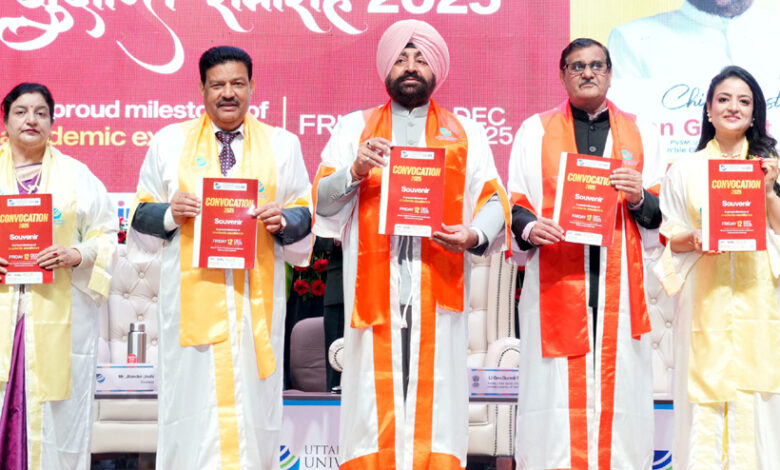 देहरादून 12 दिसम्बर। राज्यपाल लेफ्टिनेंट जनरल गुरमीत सिंह (से नि) ने शुक्रवार को उत्तरांचल विश्वविद्यालय, देहरादून के छठे दीक्षांत समारोह में मुख्य अतिथि के रूप में प्रतिभाग किया। इस अवसर पर उन्होंने उत्तीर्ण हुए विद्यार्थियों को मेडल और उपाधियां प्रदान कर शुभकामनाएं दीं और उनके उज्ज्वल भविष्य की कामना की। इस अवसर राज्यपाल ने विश्वविद्यालय की स्मारिका का विमोचन भी किया। अपने दीक्षांत भाषण में राज्यपाल ने कहा कि यह समारोह केवल डिग्री प्रदान करने का अवसर नहीं, बल्कि विद्यार्थियों के परिश्रम और प्रतिबद्धता का प्रमाण है। उन्होंने उपाधि प्राप्त करने वाले विद्यार्थियों से अपेक्षा है कि वे अपने ज्ञान का उपयोग समाज और राष्ट्र निर्माण में करें। उन्होंने कहा कि शिक्षा का वास्तविक उद्देश्य केवल बुद्धि का विकास न होकर चरित्र निर्माण है, और आज के परिवर्तित वैश्विक परिदृश्य में ईमानदारी, अनुशासन तथा नैतिक मूल्यों का महत्व और बढ़ गया है। राज्यपाल ने विद्यार्थियों को “राष्ट्र प्रथम” की भावना को सदैव सर्वाेपरि रखने का आह्वान किया। उन्होंने कहा कि हमारा ज्ञान तभी सार्थक है जब वह देश के विकास में योगदान दे। राज्यपाल ने विद्यार्थियों का उत्साहवर्धन करते हुए कहा कि वर्ष 2047 तक विकसित भारत के निर्माण में युवाओं की भूमिका सबसे महत्वपूर्ण है। उन्होंने सभी स्नातक विद्यार्थियों को जीवन में सफलता प्राप्त करने और देश व राज्य का गौरव बढ़ाने की शुभकामनाएं दीं। राज्यपाल ने विश्वविद्यालय के बहुविषयी शिक्षा, शोध, नवाचार और स्टार्टअप संस्कृति को बढ़ावा देने के प्रयासों की सराहना की। दीक्षांत समारोह में कुलपति प्रो. धर्मबुद्धि ने उपस्थित सभी लोगों का स्वागत किया और विश्वविद्यालय की उपलब्धियों की जानकारी दी। इस अवसर पर विश्वविद्यालय के अध्यक्ष जितेन्द्र जोशी, उपाध्यक्ष अंकिता जोशी, श्रीमती अनुराधा जोशी, प्रति कुलपति राजेश बहुगुणा, कुलसचिव डॉ. अनुज राणा सहित विश्वविद्यालय के शिक्षा परिषद, कार्य परिषद के सदस्य और छात्र-छात्राएं उपस्थित रहे।